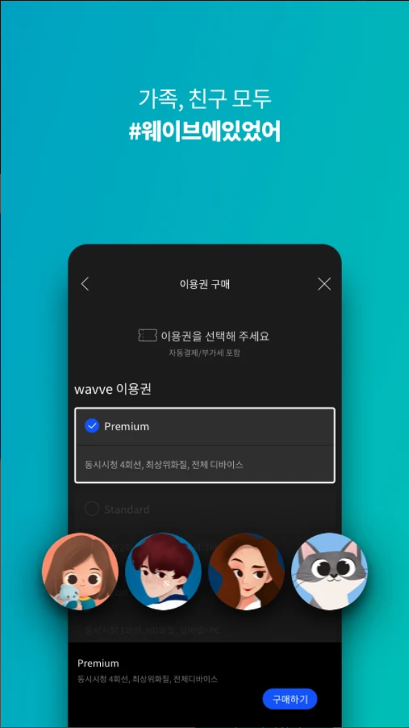 최대 4명 동시접속 상품으로 가족, 친구들과 함께 웨이브에서 만나요!