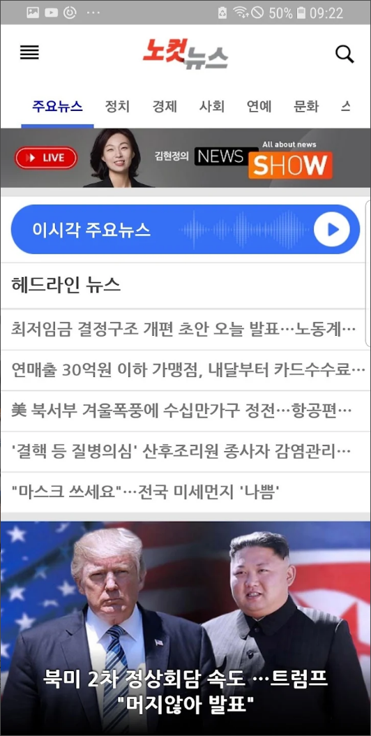 개편된 노컷뉴스 어플은 주요뉴스를 시원한 이미지와 동영상을 통해 실시간 시청 할 수 있습니다.