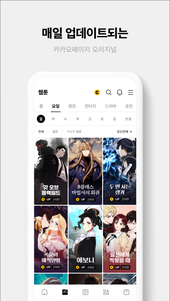 1. 매일 독점 연재되는 오리지널 웹툰, 웹소설