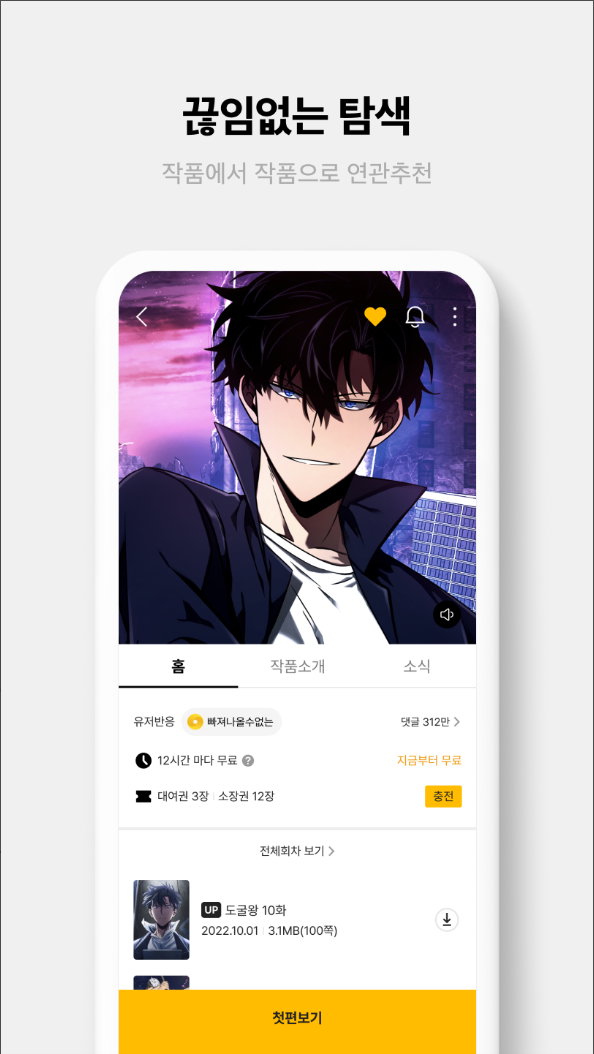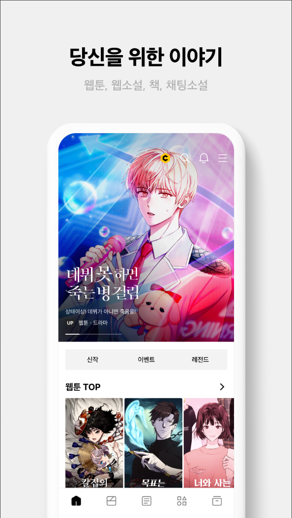 몰입감 높은 웹툰, 웹소설, 책, 채팅 소설 콘텐츠를 만나보세요.
