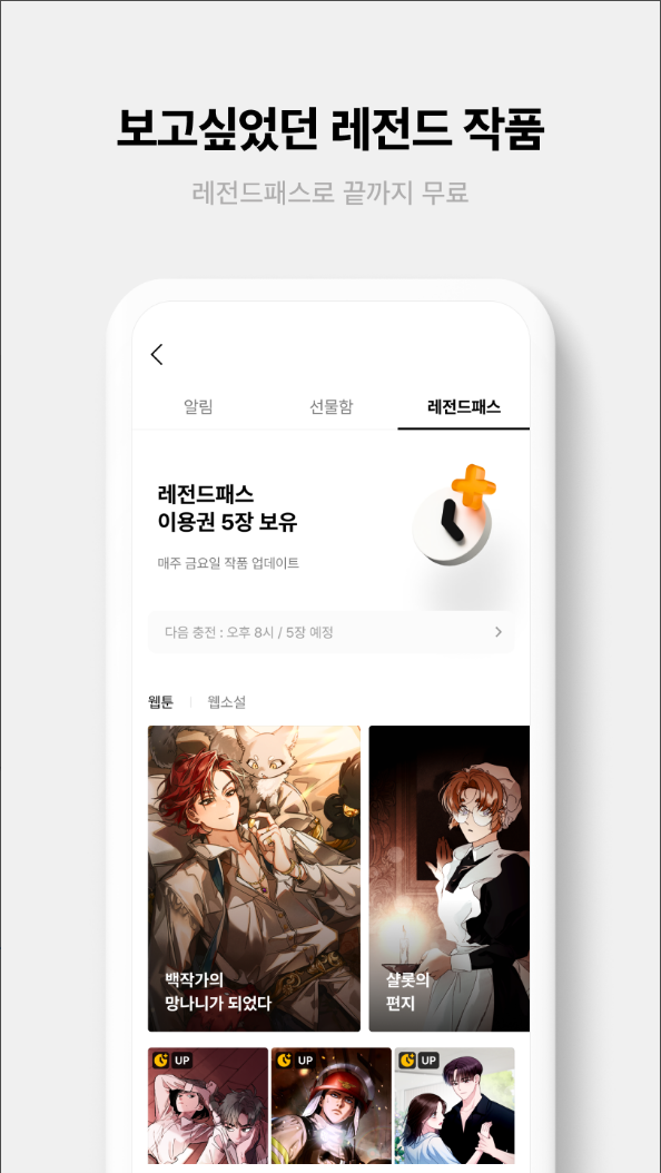 카카오페이지의 레전드패스는 보고 싶던 레전드 완결 작품을 끝까지 무료로 감상하실 수 있고, 매일 쏟아지는 오늘의 선물에서 매일 새로운 작품의 이용권을 무료로 받을 수 있으며, 캐시 프렌즈를 통해 내가 오늘 받을 수 있는 캐시는 혹은 캐시가 필요할 때 확인해 보실 수 있습니다.
