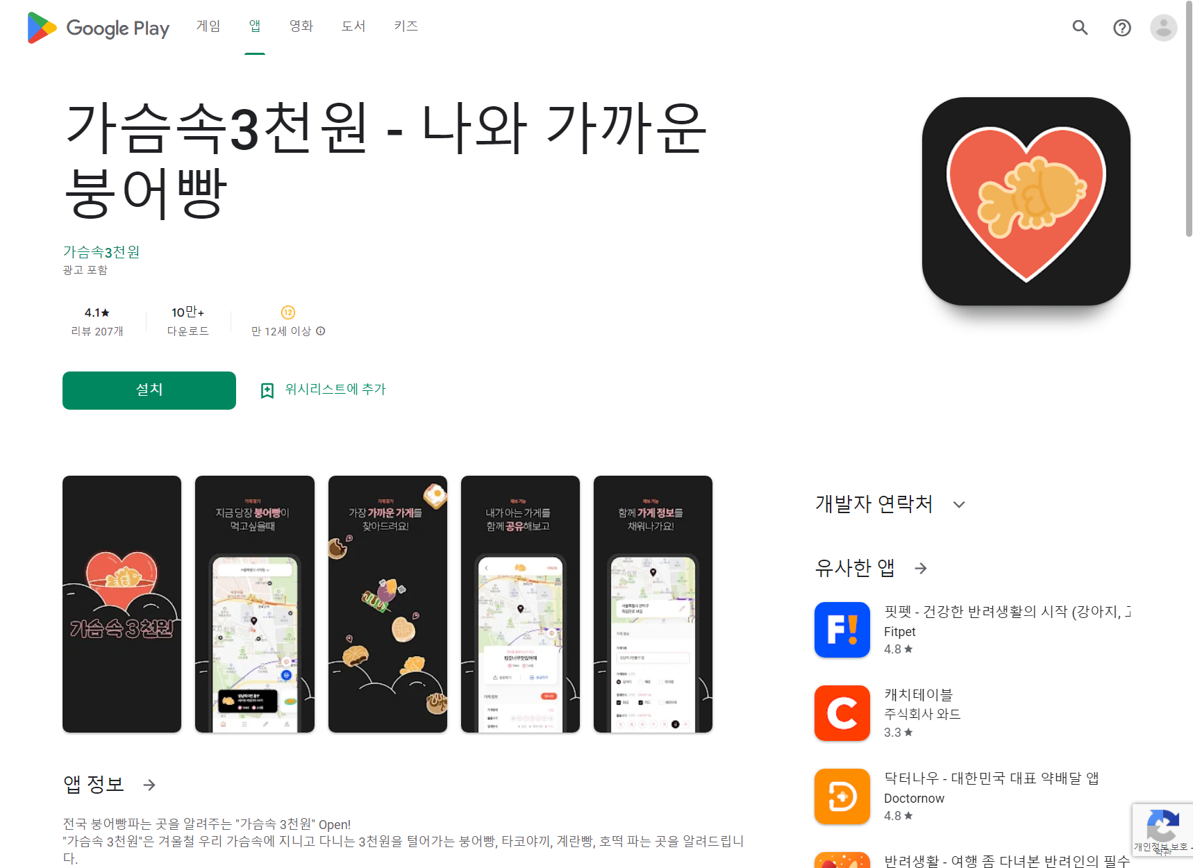 가슴속3천원 - 나와 가까운 붕어빵 - Google Play 앱