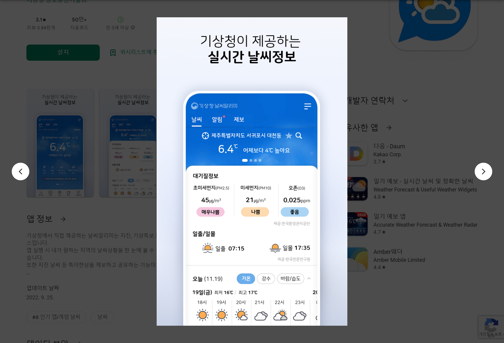 앱 실행 시 내가 원하는 지역의 날씨상황을 한 눈에 볼 수 있고 지진, 기상특보 등 위험기상 알림시 알림정보를 바로 확인할 수 있으며, 지진 날씨 등 특이현상을 제보하고 공유하는 기능이 포함되어 있습니다.