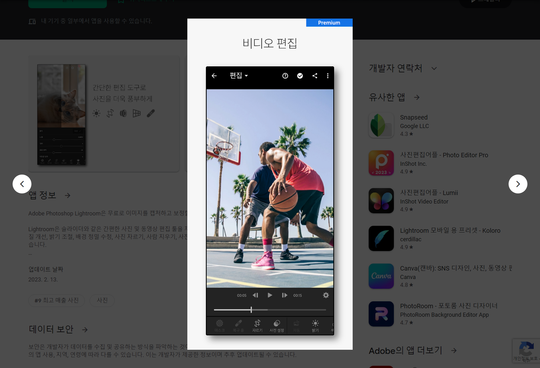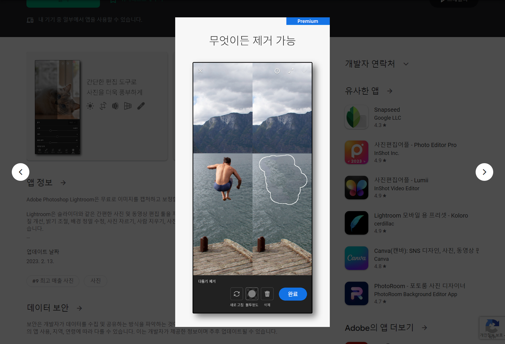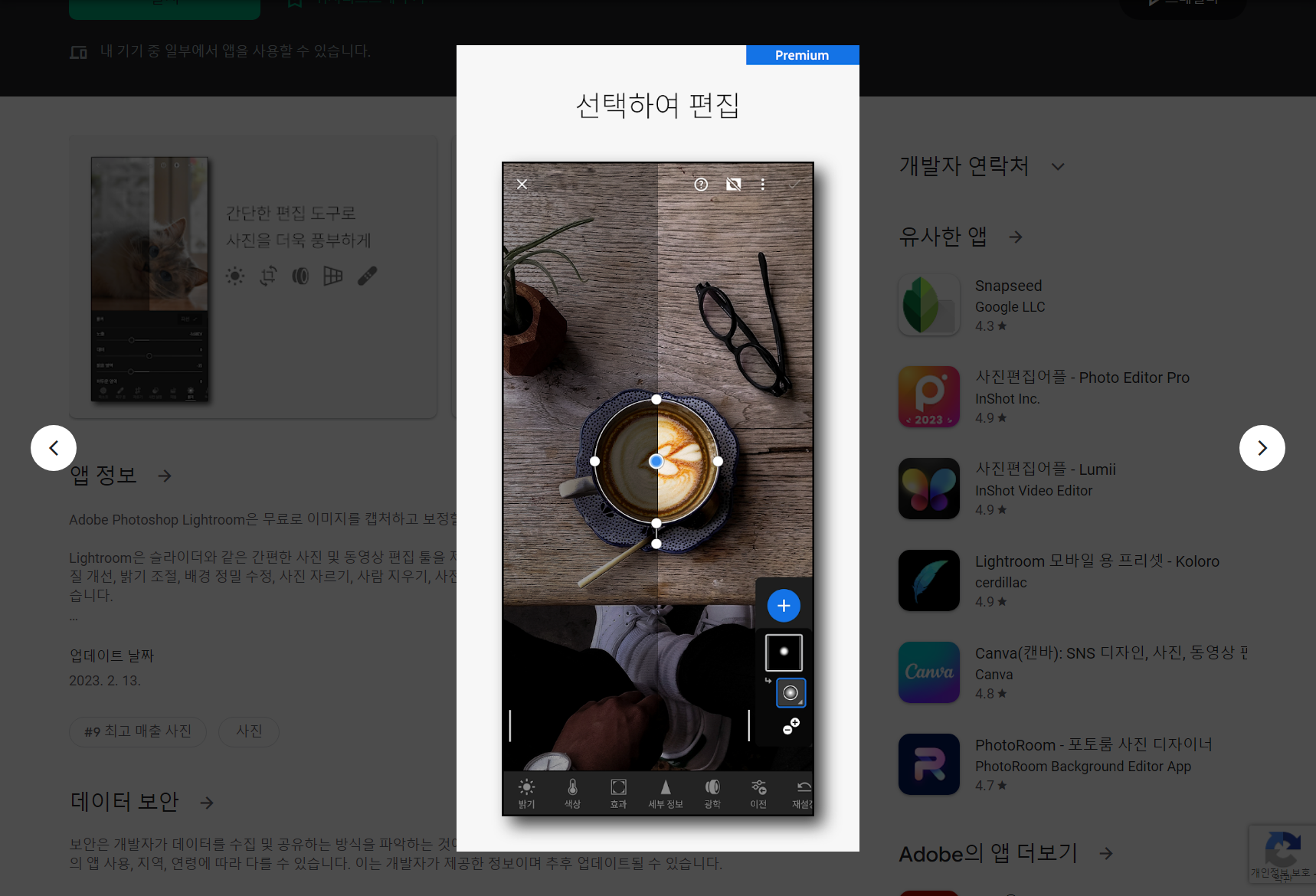 • 다양한 맞춤형 기능을 갖춘 간편한 사진 및 동영상 편집 앱으로 Adobe Lightroom 확장