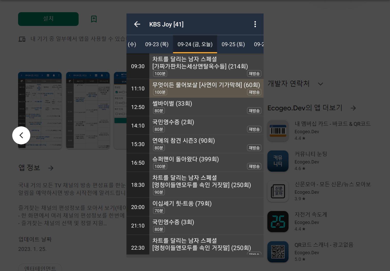 - 선택한 채널의 편성정보를 목록형태로 표시