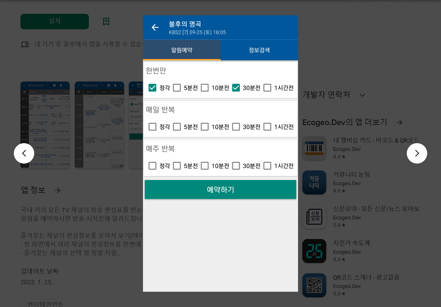 - 알림시각 : 정각/5분전/10분전/30분전/1시간전