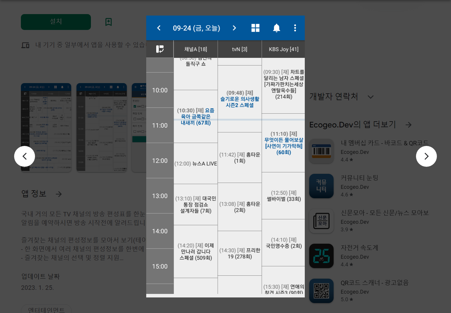 국내 거의 모든 TV 채널의 방송 편성표를 한눈에 쉽게 확인할 수 있습니다.
