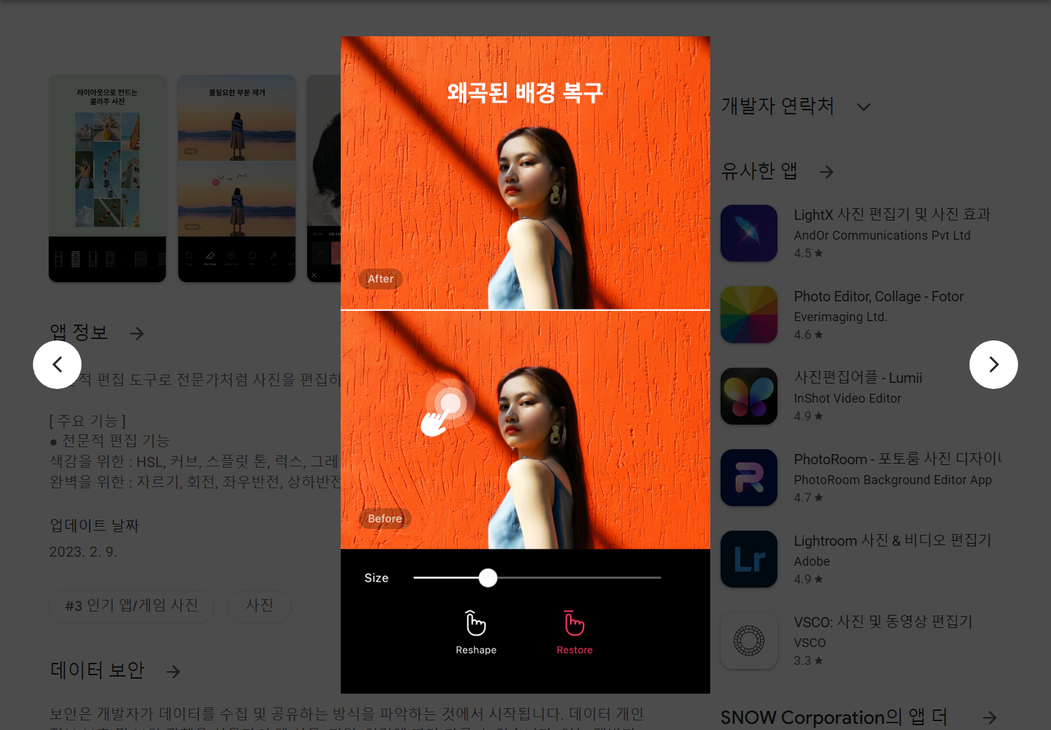 사진 편집 어플, 동영상 편집 앱, Adobe Photoshop Lightroom은 무료로 이미지를 캡처하고 보정할 수 있는 강력한 사진 및 동영상 편집 앱이며, 슬라이더와 같은 간편한 사진 및 동영상 편집 툴을 제공하